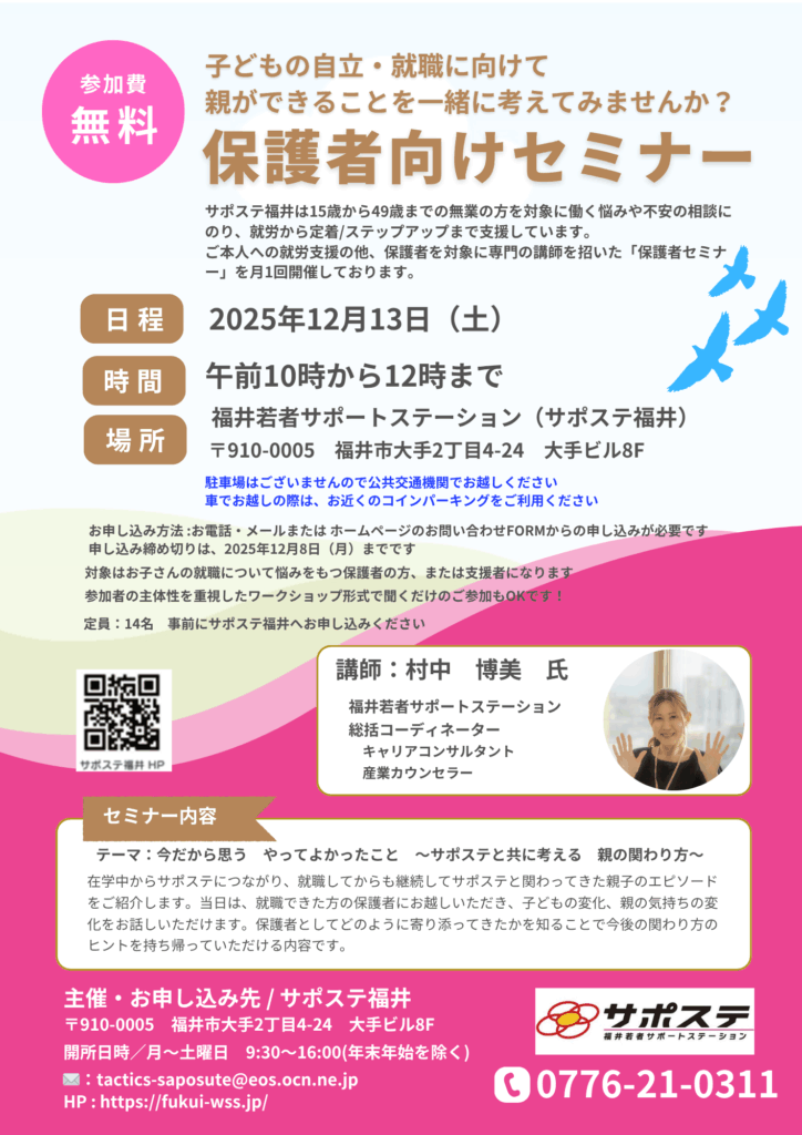 12月 保護者向けセミナーのお知らせ